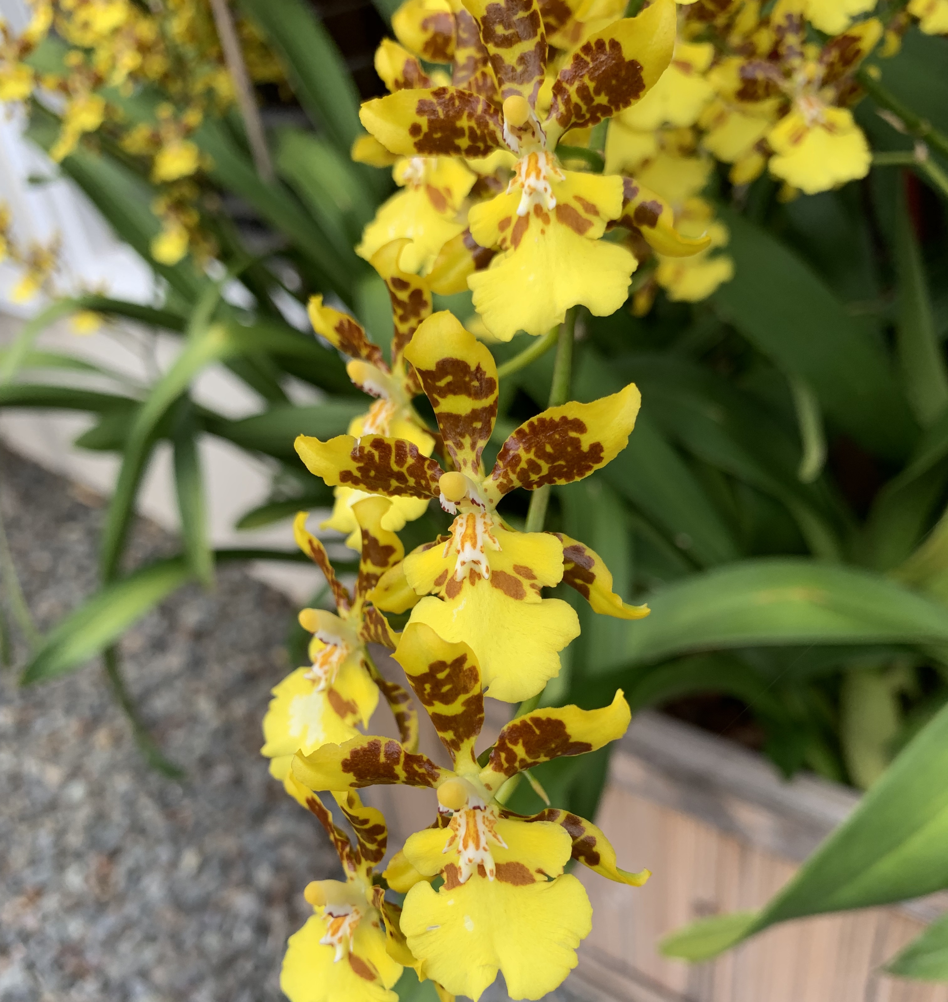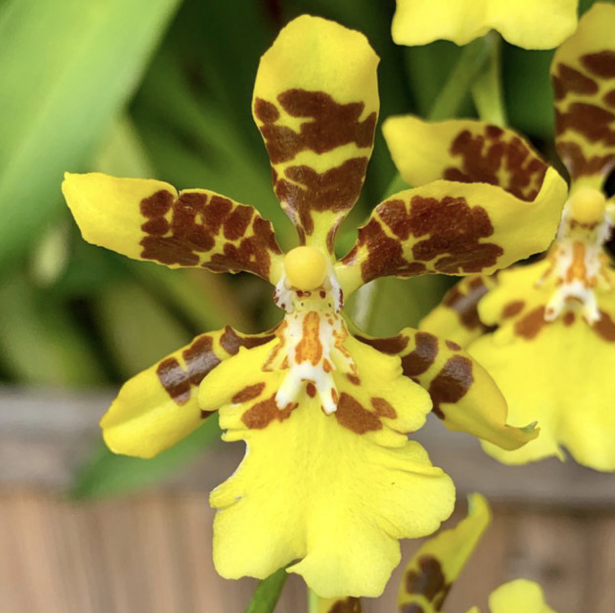 This lovely rich yellow orchid has an attractive brown leopard spot, which makes it quite unique.